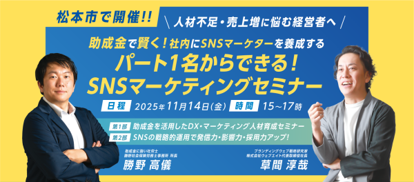 【11/14松本開催決定!!】パート1名からできる!SNSマーケティングセミナー