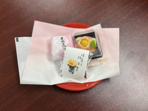 お昼にはお弁当やかわいい上生菓子の差し入れをいただいたり、雪で帰れなくなりそうだったところを駅まで送っていただいたり、お菓子のお土産までいただいてしまい…